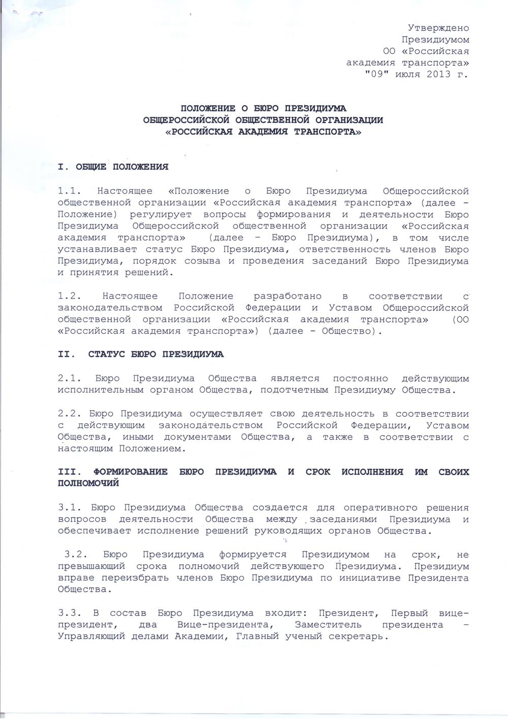 Положение о Бюро Президиума Общероссийской Общественной Организации "Российская Академия Транспорта" (стр. 1, 2, 3)